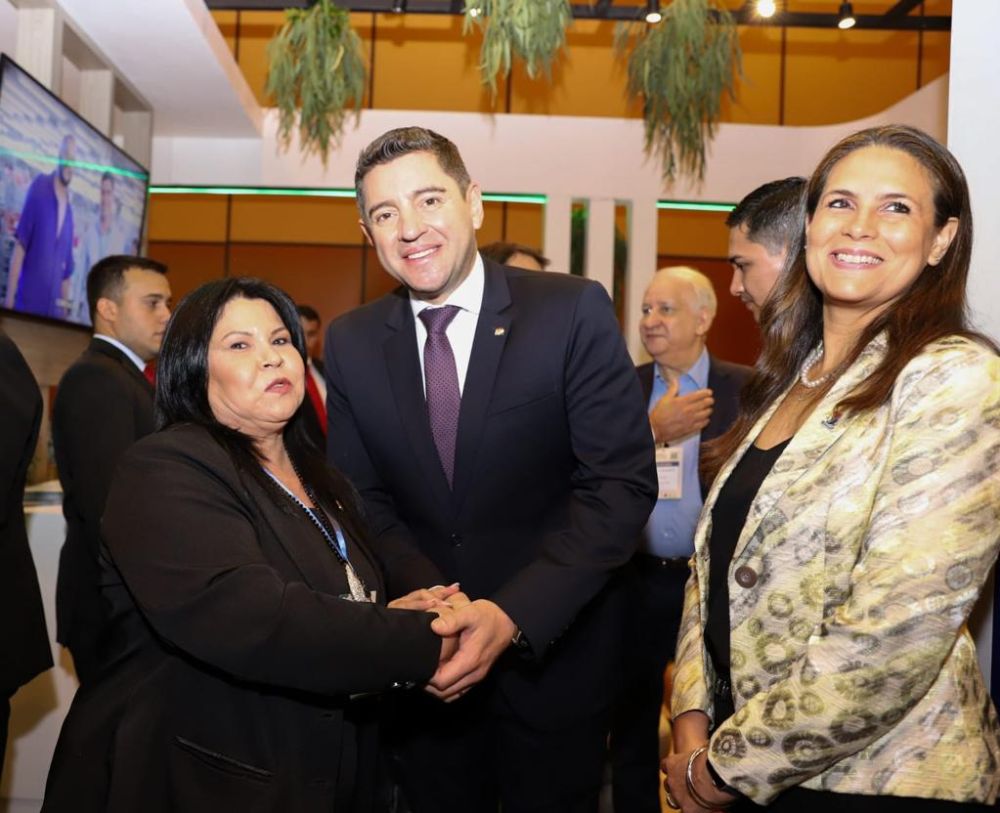 PTE de la UIP ING.Enrique Duarte la Ministra de industria y comercio Lorena Méndez el Director de itaipu lado paraguayo y su par lado Brasileño Busto Sacarias Irún -Enio José Verri El PTE . en Ejercicios vce. PTE Pedro Aliana Embajador del Brasil en Paraguay Lourdes Ocampo gobierno Paraguay : J.Antônio Macondes de carvalho PTE de la cámara de Diputados Raúl Latorre .Empresarios Oscar Barreto, Elena Carmen ,funcionarios de industria y comercio, representantes de Fiesc Sidinei Antônio Ferrarez, Maria Teresa Bustamante Presidenta da Fiesc.