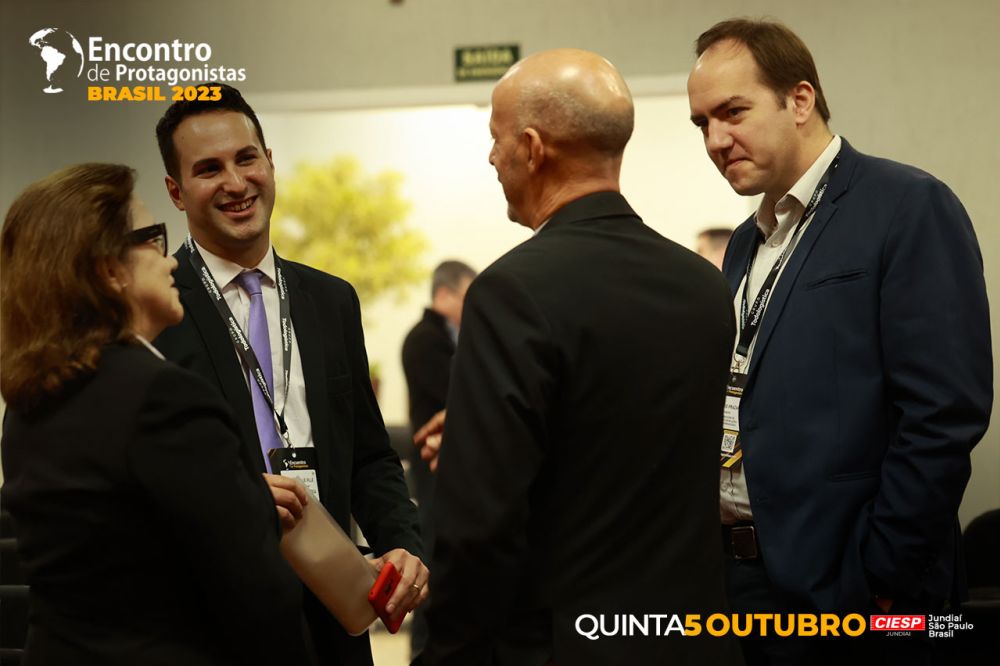 O CIESP Jundiaí sediou na quinta-feira, dia 5 de outubro, o Encontro de Protagonistas 2023 que trouxe o tema “Brasil, Caminho para novos negócios” e reuniu conferencistas internacionais para um dia inteiro de palestras e novas oportunidades de negócios na área de Comércio Exterior. O vice-diretor do CIESP Jundiaí, Claudio Palma, e o diretor de Comércio Exterior, Marcio Ribeiro Julio, participaram da abertura do evento que reuniu líderes e empreendedores nacionais e internacionais para trocar as últimas tendências e oportunidades de negócios com o Brasil. A abertura do evento foi feita pelo engenheiro Mario Alonso, Diretor do Grupo TodoLogística & Comércio Exterior e Luciano Delle Ville.
