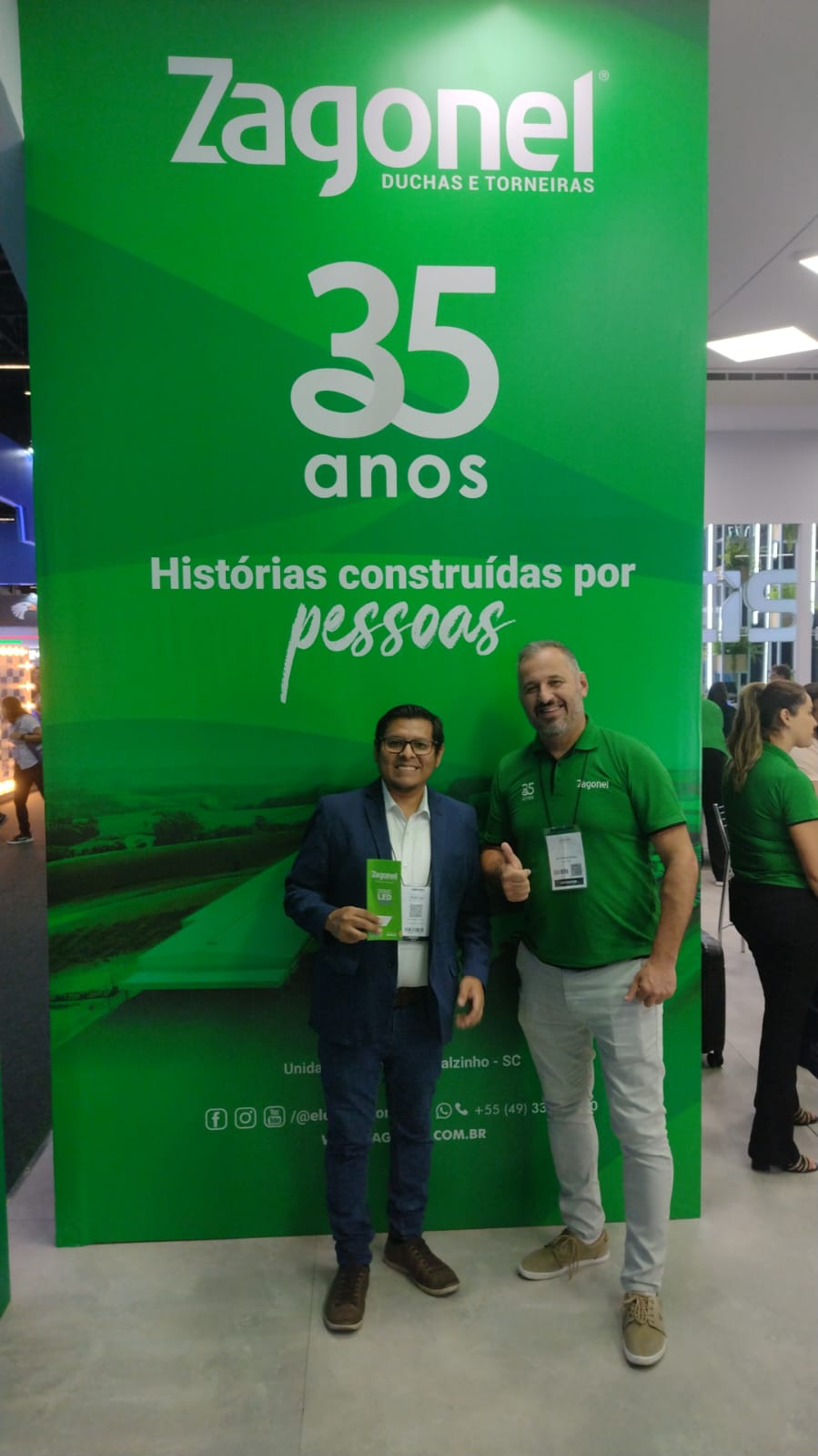 Franchesco Lopes, Diretor da ccmercosul, reunidos com o com o Sr. Sidinei Ferrarez, Gerente Nacional de Iluminação e Sr.Milton de Souza, Cordenador de vendas, na feira Feicon, no estande de nosso associado Zagonel S.A., expondo novos produtos e muitos outros.