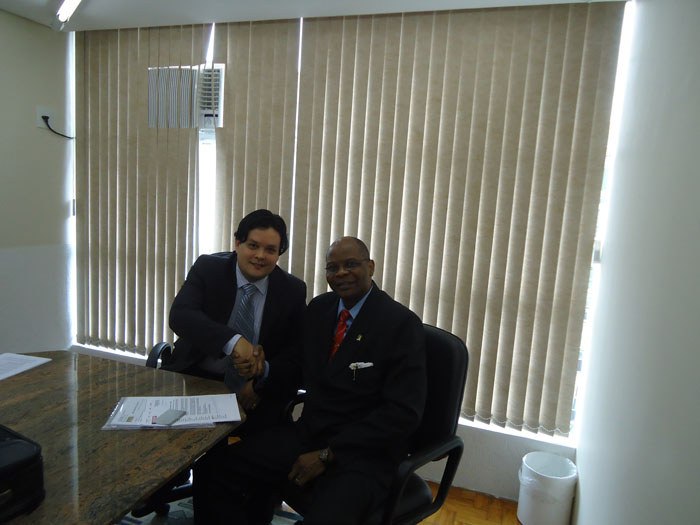 Em visita à Câmara de Indústria e Comércio do MERCOSUL e Américas, o Sr. Lanre Moses Aderonmu, da recém criada Câmara de Comércio da Liga Africana, foi recepcionado pelo, Sr. Mário Kawahala.