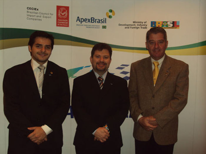 Os setores representados foram: Alimentos e Bebidas, Autopeças, Calçados, Construção, Cosméticos, Móveis e Decoração e Vestuário. Na foto, estão o Diretor de Relações Internacionais da Câmara do Mercosul, Fábio Torquato, o Gestor do Programa Tradings do Brasil da APEX Brasil, Mauricio Manfre e o Presidente da Trading M&M, parceira da Câmara do Mercosul, Marcio Marques.