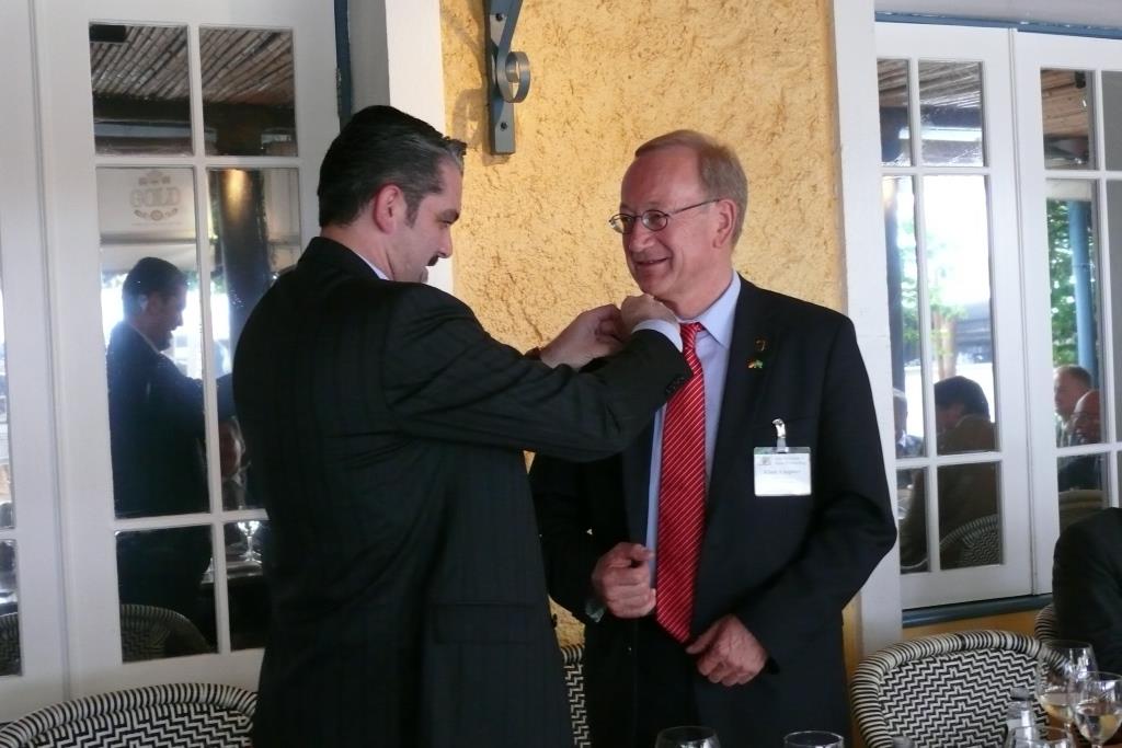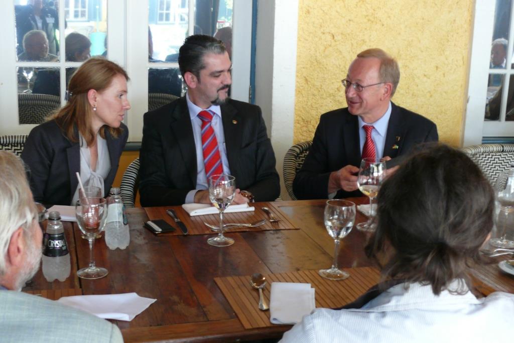A Convite do Cônsul-Geral da Alemanha em São Paulo, Rainer Müller, o Diretor de Operações Corporativas da Câmara do Mercosul, Rogério Lino Pereira, participou de um encontro com a Delegação da Alemanha, composta por cerca de 25 integrantes, a maioria Parlamentares, Representantes do Governo e Instituições do Estado Alemão. A comitiva teve interesse em conhecer mais sobre o Agronegócio no Brasil e nos Países Membros do Mercosul. Rogério Lino Pereira, em sua apresentação, destacou à Comitiva, os principais aspectos da produção agrícola de cada País do Mercosul, o cultivo de culturas transgênicas e convencionais, tecnologias, esta última com destaque aos programas e software que auxiliam os agricultores no Brasil, desenvolvidos pela Embrapa, estatísticas econômicas da Pecuária no Brasil, Argentina e Uruguai. O chefe da missão, Klaus Käppeler, informou que Baden-Würtemberg é um estado de pouca produção agrícola, mas de uma indústria muito forte e com potencial de exportação. Ele ainda destacou, que a agricultura na região é praticada em pequenas propriedades e que seu estado se declarou como área livre de transgênicos. Nossa missão é conhecer a produção no Brasil e se possível nos Países Membros do Mercosul, porque tudo que descobrirmos, será importante para nosso pensamento e ação política, disse Klaus.