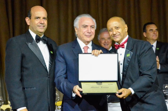 A cerimônia de entrega da Medalha de Honra ao Mérito Gestão Pública 2018, organizada pelo Fórum das Américas e Global Council of Sales Marketing GCSM, homenageou o Presidente da República Michel Temer. O evento - organizado por Mário Garnero, Presidente do Fórum das Américas e de Honra do GCSM; Fábio de Salles Meirelles, Presidente da Federação da Agricultura do Estado de São Paulo; Agostinho Turbian, Presidente Mundial do GCSM; e Romeu Chap Chap, Chairman - aconteceu na noite de quinta-feira, 13 de dezembro, no Buffet França, bairro Higienópolis, região central de São Paulo. Convidado para a cerimônia, o Crea-SP foi representado por seu Presidente, o Eng. Vinicius Marchese Marinelli.