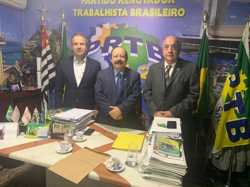 Reunidos no Comitê do Partido Renovador Trabalhista, com Vice- Presidente da Câmara de Ind. e Comércio do Mercosul Américas ,Dr. Nasser Rajab, Fundador e Presidente Sr. Levy Fidelix, e o Presidente da Câmara de Ind. Comercio do Mercosul e Américas, Lic.Miguel Lujan Paletta.