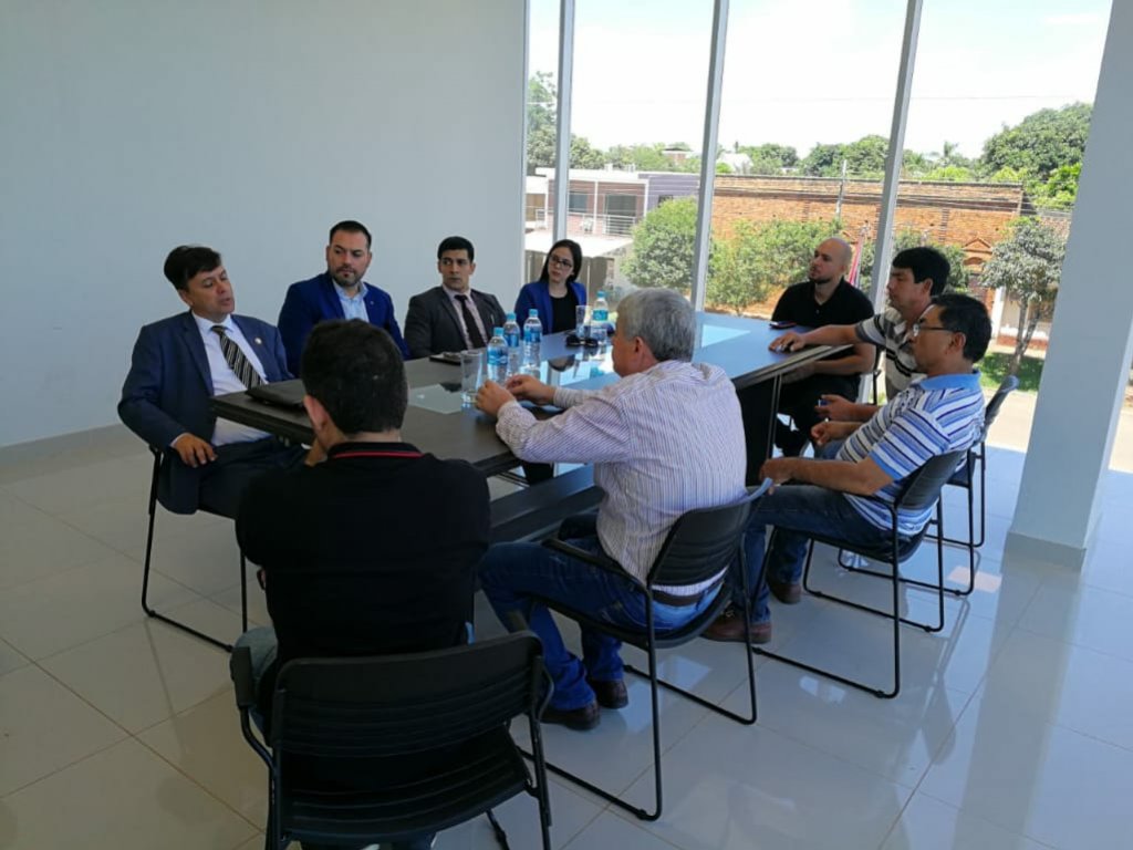 El viernes 7 de febrero el intendente de la ciudad de Caazapá el Sr. Victoriano Manuel López recibió en su despacho al director del Comité Paraguay de la Cámara de Industria y Comercio del Mercosur y América, Lic. Gilson Dantas Carmini que junto con su comitiva; Lic. Adalberto Brizuela asesor financiero, Dr. Gabriel Mosqueira asesor jurídico y la señorita Evelyn Santos secretaria del Comité Paraguay. También estuvieron presentes el empresario caazapeño propietario del parque comercial La Aurora Bruno Viveros, el concejal Carlos Noguera, Heriberto López secretario municipal de la gestión ambiental, Raúl Ramírez presidente de la comisión Ykua Bolaños y Juan Álvarez secretario general de la municipalidad.
