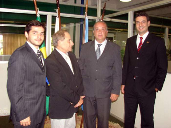 Na foto estão Sr. Rodrigo Hajjar, diretor da Secretaria de Cooperação Internacional do Município de Campinas, Fábio Torquato, diretor de relações internacionais da Câmara de Comércio do Mercosul, Sr. Romeu Santini Secretário Municipal da Prefeitura de Campinas e o Presidente da Câmara do Mercosul.