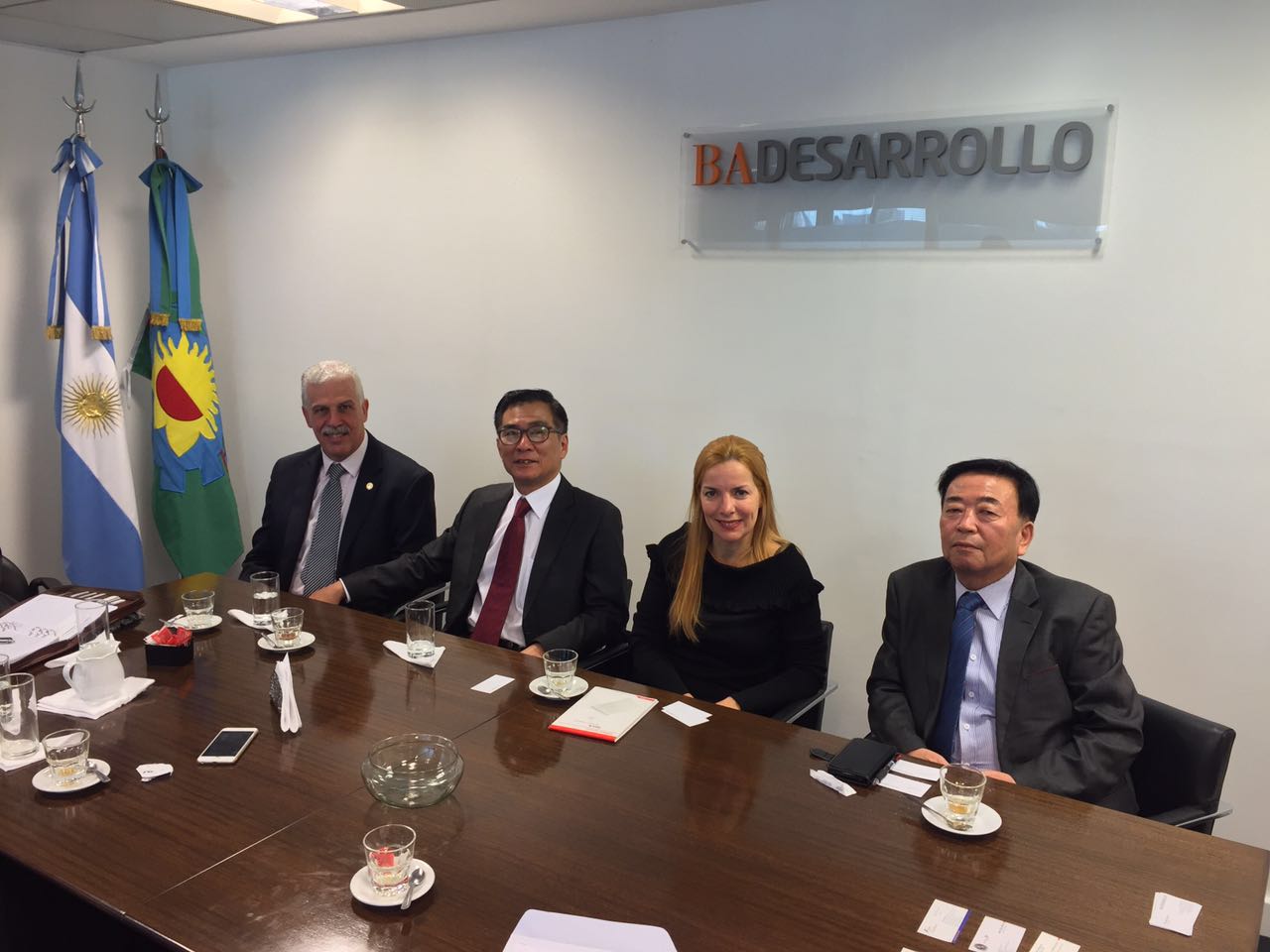 Francisco Andres Epele Pivcenic, Argentina Diretor Geral da Câmara de Comércio do Mercosul e Américas, Chon du Sin, Ceo Finetechnics, aleandra Scafatti, BA Presidente Park desenvolvimentos Gyo Heon, Presidente Jang Won assinar a carta intenção correspondente.