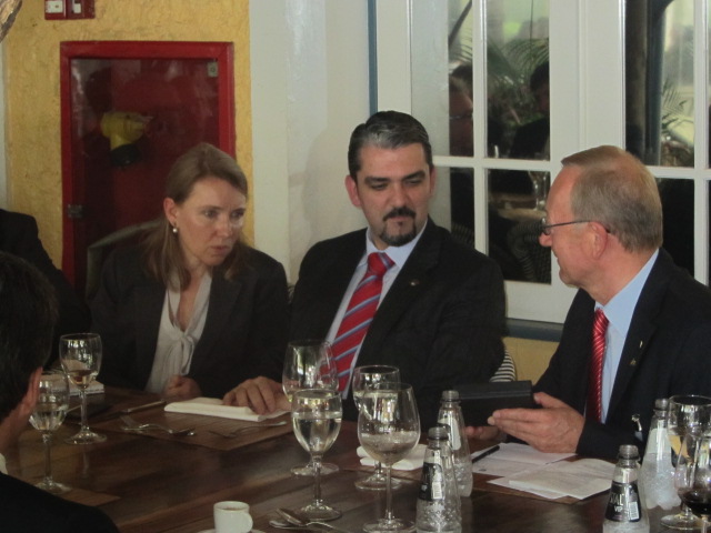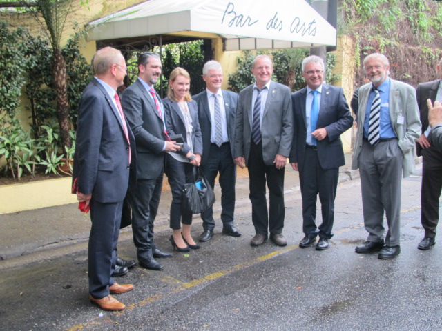 A Convite do Cônsul-Geral da Alemanha em São Paulo, Rainer Müller, o Diretor de Operações Corporativas da Câmara do Mercosul, Rogério Lino Pereira, participou de um encontro com a Delegação da Alemanha, composta por cerca de 25 integrantes, a maioria Parlamentares, Representantes do Governo e Instituições do Estado Alemão. A comitiva teve interesse em conhecer mais sobre o Agronegócio no Brasil e nos Países Membros do Mercosul. Rogério Lino Pereira, em sua apresentação, destacou à Comitiva, os principais aspectos da produção agrícola de cada País do Mercosul, o cultivo de culturas transgênicas e convencionais, tecnologias, esta última com destaque aos programas e software que auxiliam os agricultores no Brasil, desenvolvidos pela Embrapa, estatísticas econômicas da Pecuária no Brasil, Argentina e Uruguai. O chefe da missão, Klaus Käppeler, informou que Baden-Würtemberg é um estado de pouca produção agrícola, mas de uma indústria muito forte e com potencial de exportação. Ele ainda destacou, que a agricultura na região é praticada em pequenas propriedades e que seu estado se declarou como área livre de transgênicos. Nossa missão é conhecer a produção no Brasil e se possível nos Países Membros do Mercosul, porque tudo que descobrirmos, será importante para nosso pensamento e ação política, disse Klaus.