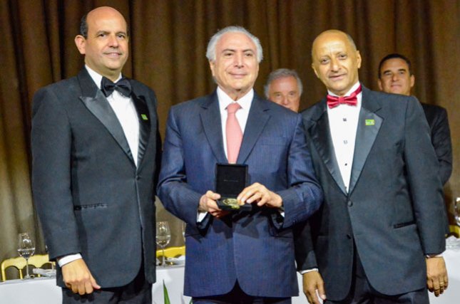 A cerimônia de entrega da Medalha de Honra ao Mérito Gestão Pública 2018, organizada pelo Fórum das Américas e Global Council of Sales Marketing GCSM, homenageou o Presidente da República Michel Temer. O evento - organizado por Mário Garnero, Presidente do Fórum das Américas e de Honra do GCSM; Fábio de Salles Meirelles, Presidente da Federação da Agricultura do Estado de São Paulo; Agostinho Turbian, Presidente Mundial do GCSM; e Romeu Chap Chap, Chairman - aconteceu na noite de quinta-feira, 13 de dezembro, no Buffet França, bairro Higienópolis, região central de São Paulo. Convidado para a cerimônia, o Crea-SP foi representado por seu Presidente, o Eng. Vinicius Marchese Marinelli.