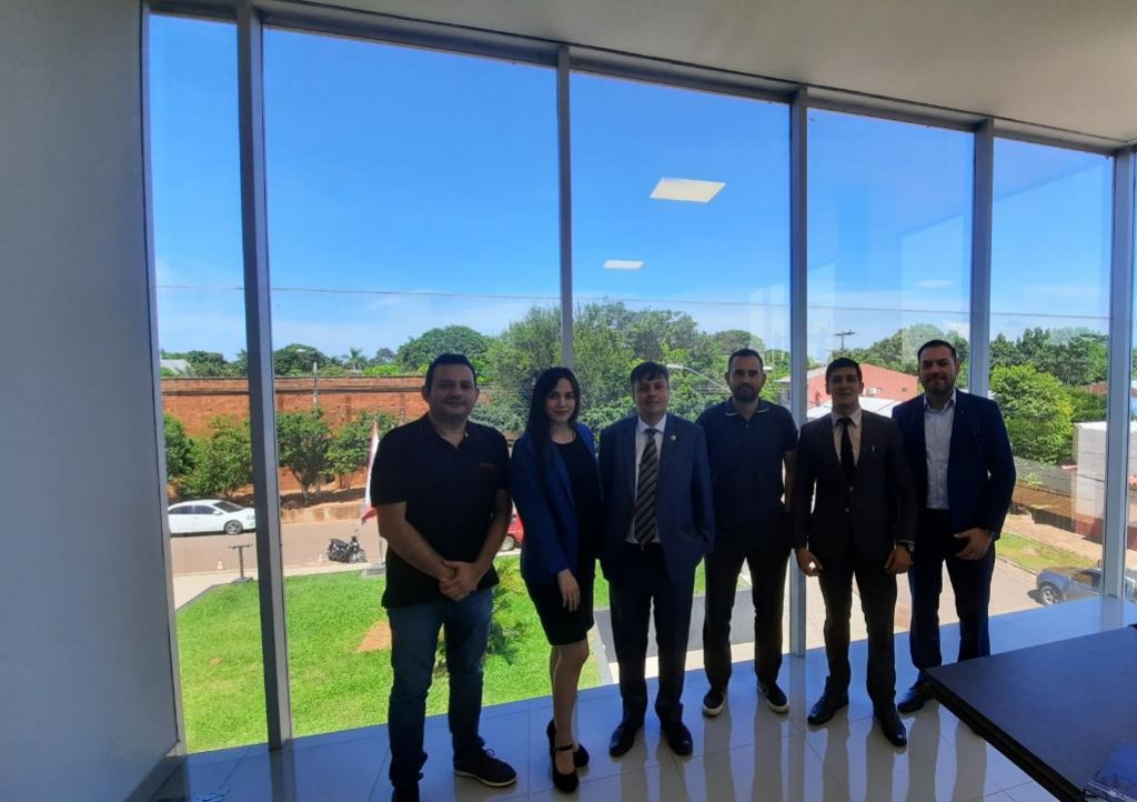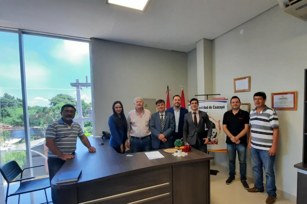 El viernes 7 de febrero el intendente de la ciudad de Caazapá el Sr. Victoriano Manuel López recibió en su despacho al director del Comité Paraguay de la Cámara de Industria y Comercio del Mercosur y América, Lic. Gilson Dantas Carmini que junto con su comitiva; Lic. Adalberto Brizuela asesor financiero, Dr. Gabriel Mosqueira asesor jurídico y la señorita Evelyn Santos secretaria del Comité Paraguay. También estuvieron presentes el empresario caazapeño propietario del parque comercial La Aurora Bruno Viveros, el concejal Carlos Noguera, Heriberto López secretario municipal de la gestión ambiental, Raúl Ramírez presidente de la comisión Ykua Bolaños y Juan Álvarez secretario general de la municipalidad.