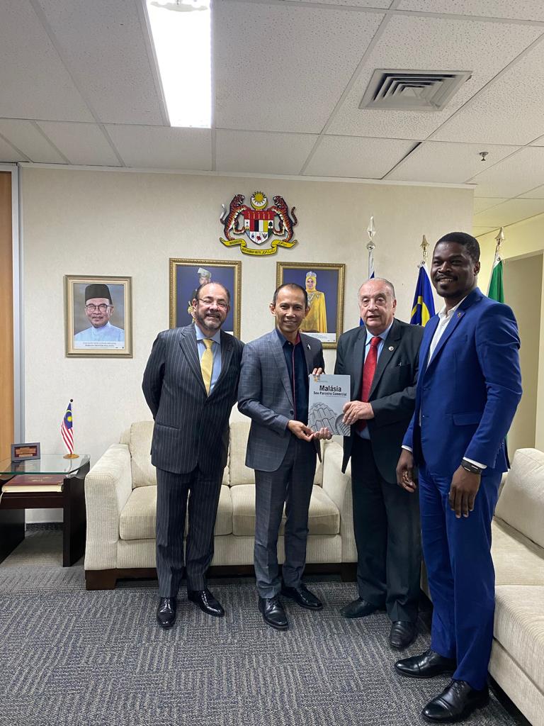O Presidente da Câmara de indústria e Comércio do Mercosul e Américas (CCMercosul), Lic. Miguel Lujan Paletta e o Dr.Ricardo Nogueira, Diretor Juridico Câmara do Mercosul, esteve reunido na sexta-feira dia 14 de Abril 2023, na sede da Embaixada da Malásia em São Paulo, com o Exmo. o Sr. Adli Haikal Abdul Hanib, Cônsul / Adido Comercial da Embaixada da Malásia em São Paulo, e o Sr. Kossi Essodina Telou, Assessor Comercial e Econômica da Embaixada da Malásia em São Paulo. Entre os temas abordados durante o encontro esteve a relação comercial entre os Países do Mercosul e o país do Sudeste Asiático e a importância de estreitar os laços entre os países.
